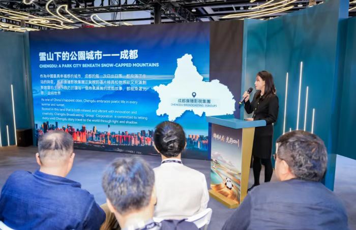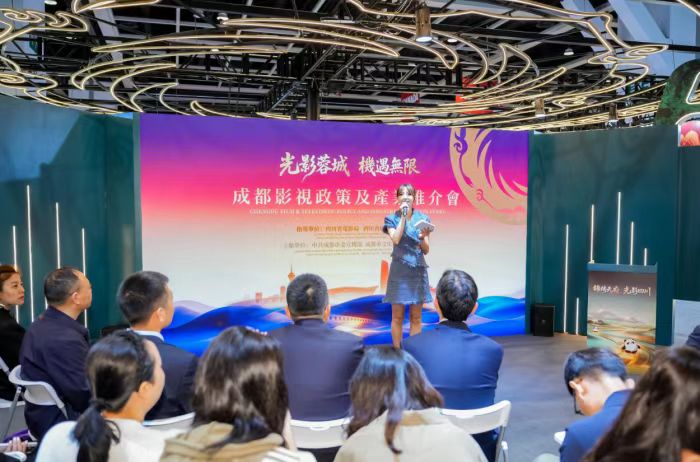 在產(chǎn)業(yè)平臺與企業(yè)推介環(huán)節(jié),成都影視城管委會副主任吳詩涵、成都成視音樂制作有限公司總經(jīng)理李亞婷分別代表成都影視城和成都廣播影視集團,向全球影視同仁展示成都影視產(chǎn)業(yè)的核心載體與發(fā)展活力。
