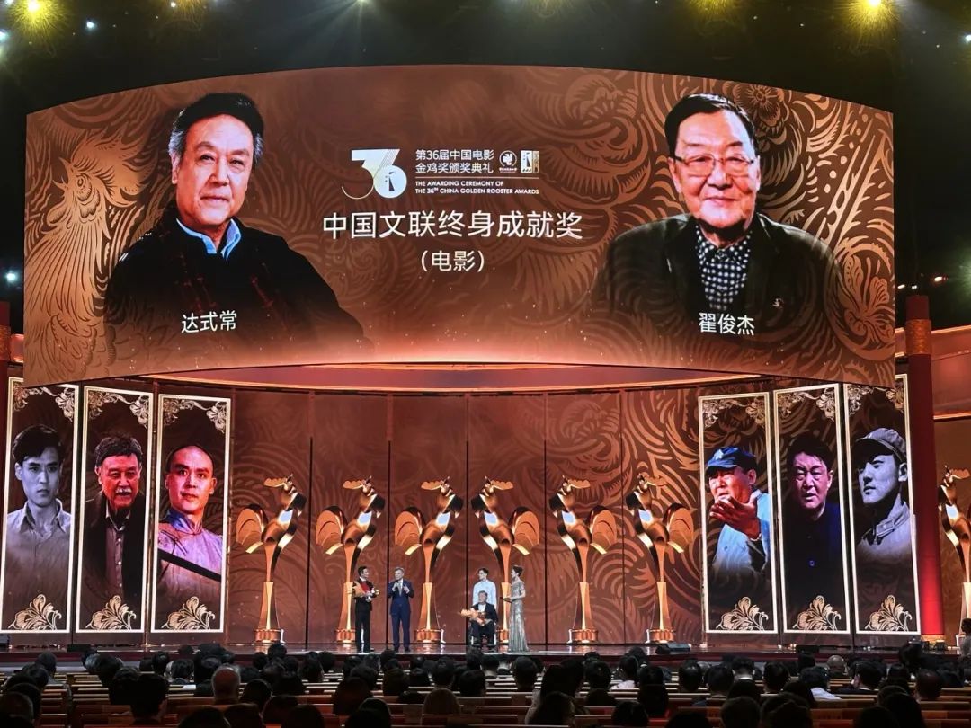 值得一提的是,在頒獎典禮上,達(dá)式常、翟俊杰被授予中國文聯(lián)終身成就獎(電影)。