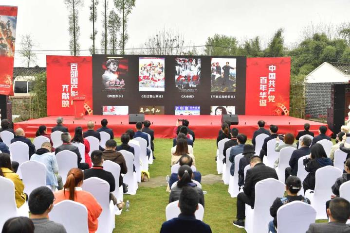 由四川省委宣傳部、中國電影集團公司聯(lián)合主辦,中共眉山市委宣傳部、中影新農(nóng)村數(shù)字電影放映有限公司、峨眉電影集團有限公司、成都電影集團有限責任公司共同承辦的“中國共產(chǎn)黨百年華誕 百部國產(chǎn)影片齊獻映”活動啟動儀式在彭山區(qū)的謝家街道勝利橋街毛河院子隆重舉行。